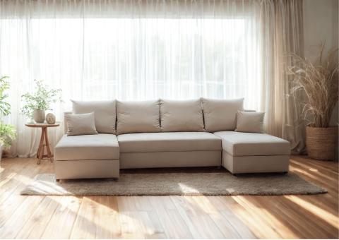 ☑️PACO U – Narożnik z Łatwym Systemem Rozkładania i Dwoma Pojemnikami na Pościel