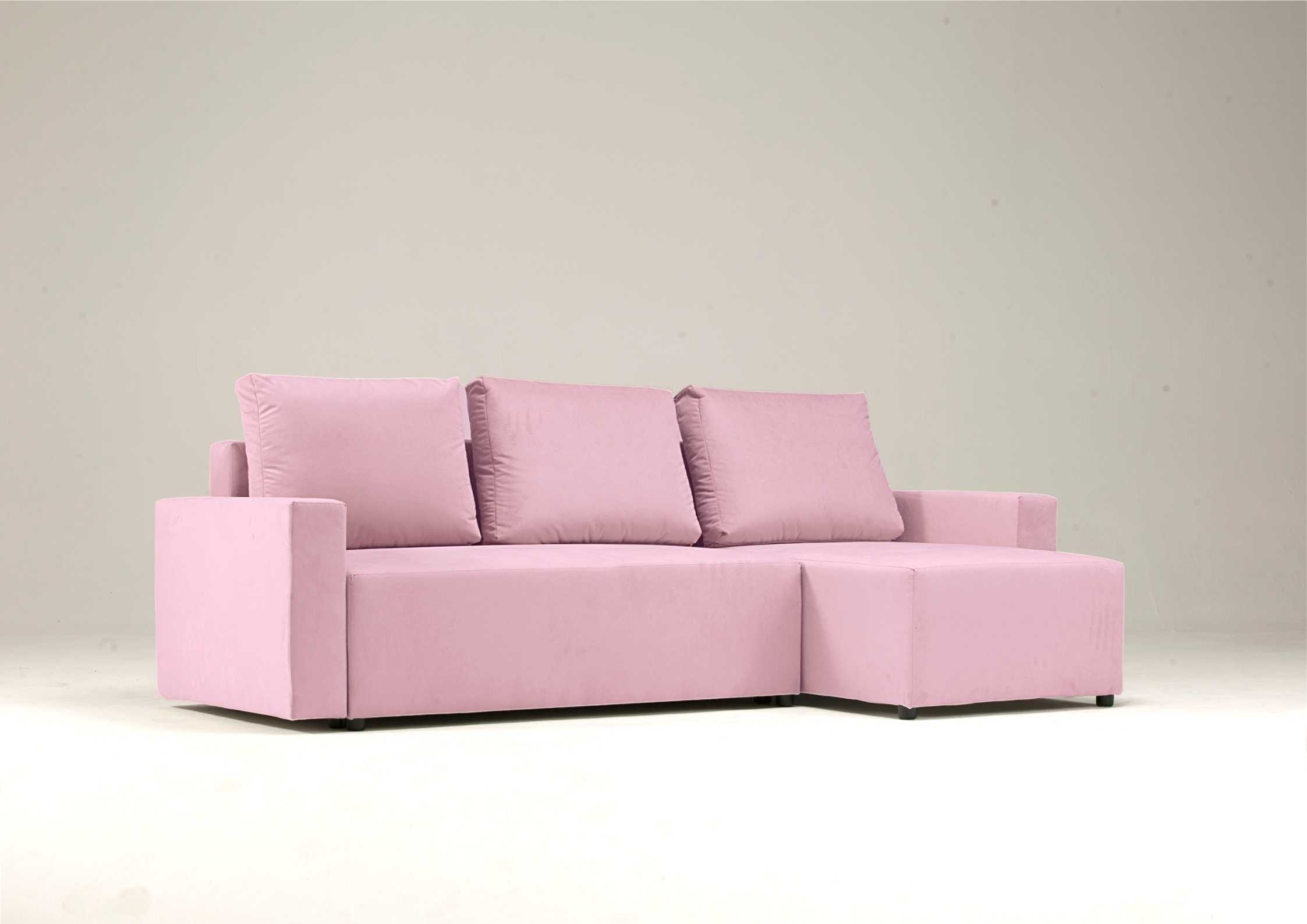 Narożnik Rozkładany Prawostronny LILA Różowy z Funkcją Spania do Salonu
