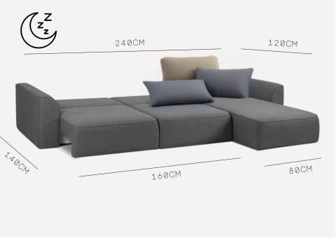 - Narożnik KOMA wyposażony jest w wygodną funkcję spania o powierzchni 140x240cm