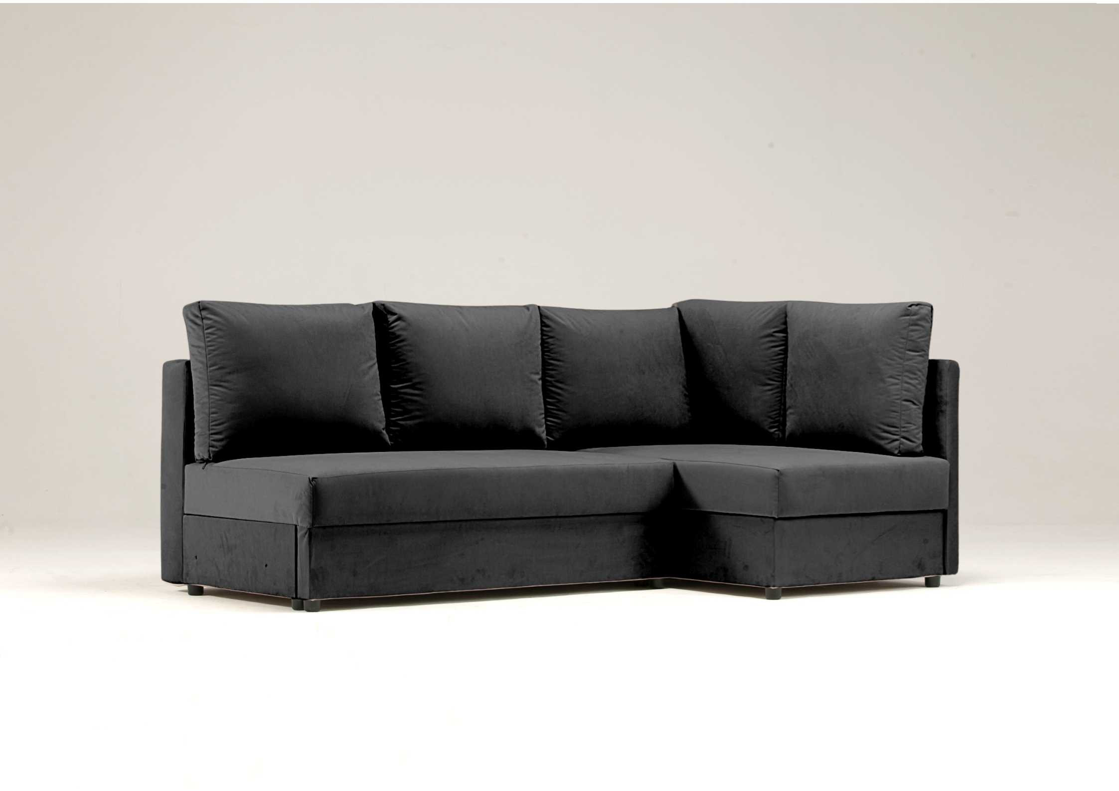 Narożnik Rozkładany Prawy MOBO Czarny Funkcja Spania Schowek Uniwersalny
