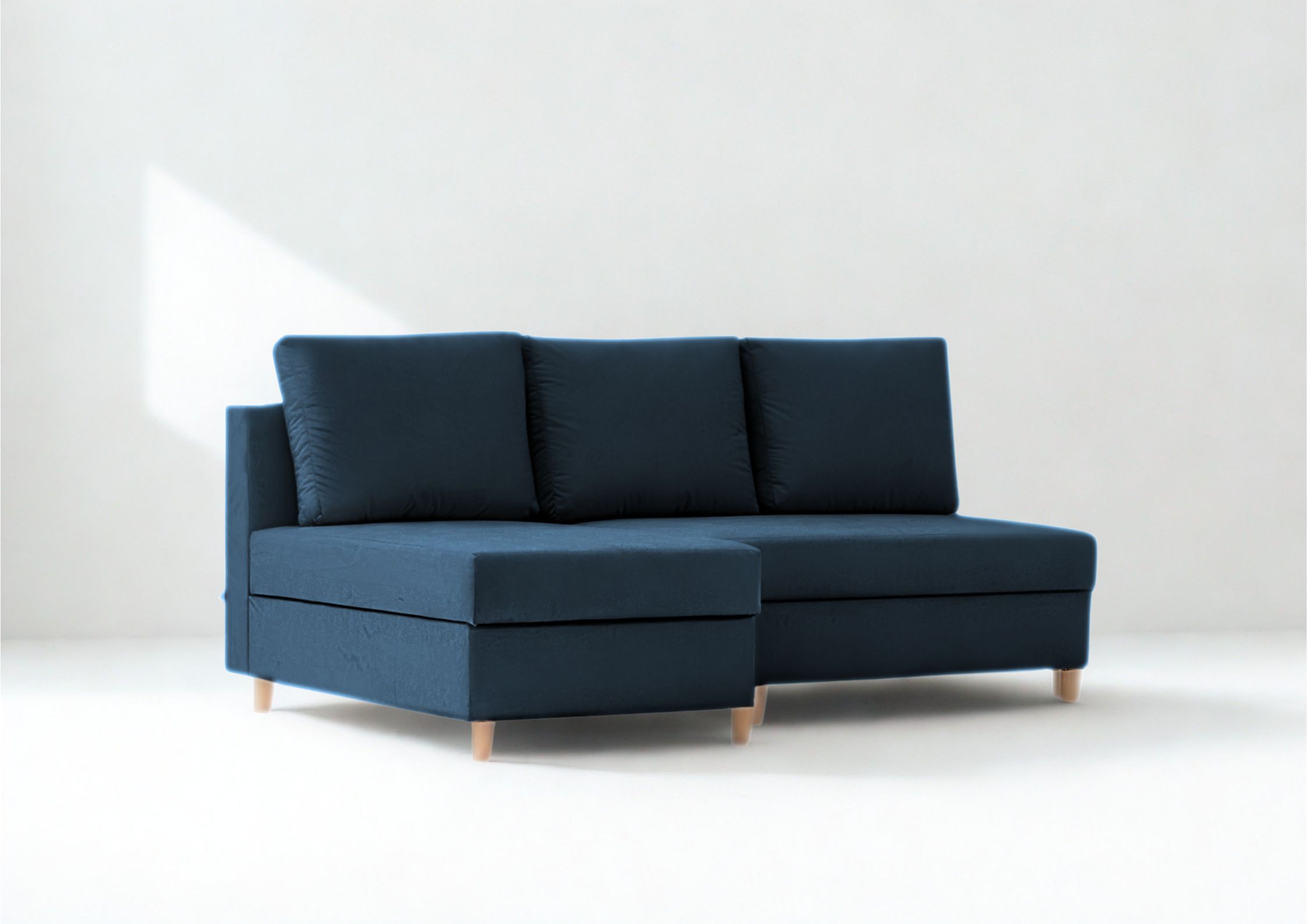 ⭐️Narożnik Rozkładany Lewostronny ONYX Granatowy Funkcja Spania Schowek Salon