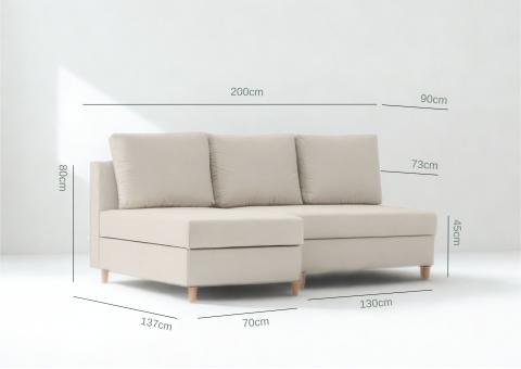 Narożnik skandynawski Onyx to mebel, który jest doskonałą propozycją jako mebel wypoczynkowy do małego pomieszczenia. Narożnik Onyx to nowoczesność oraz funkcjonalność w stylu skandynawskim. Narożnik rozkładany z funkcją spania posiada dodatkowy pojemnik na pościel. Narożnik wykonany jest na drewnianych nóżkach.