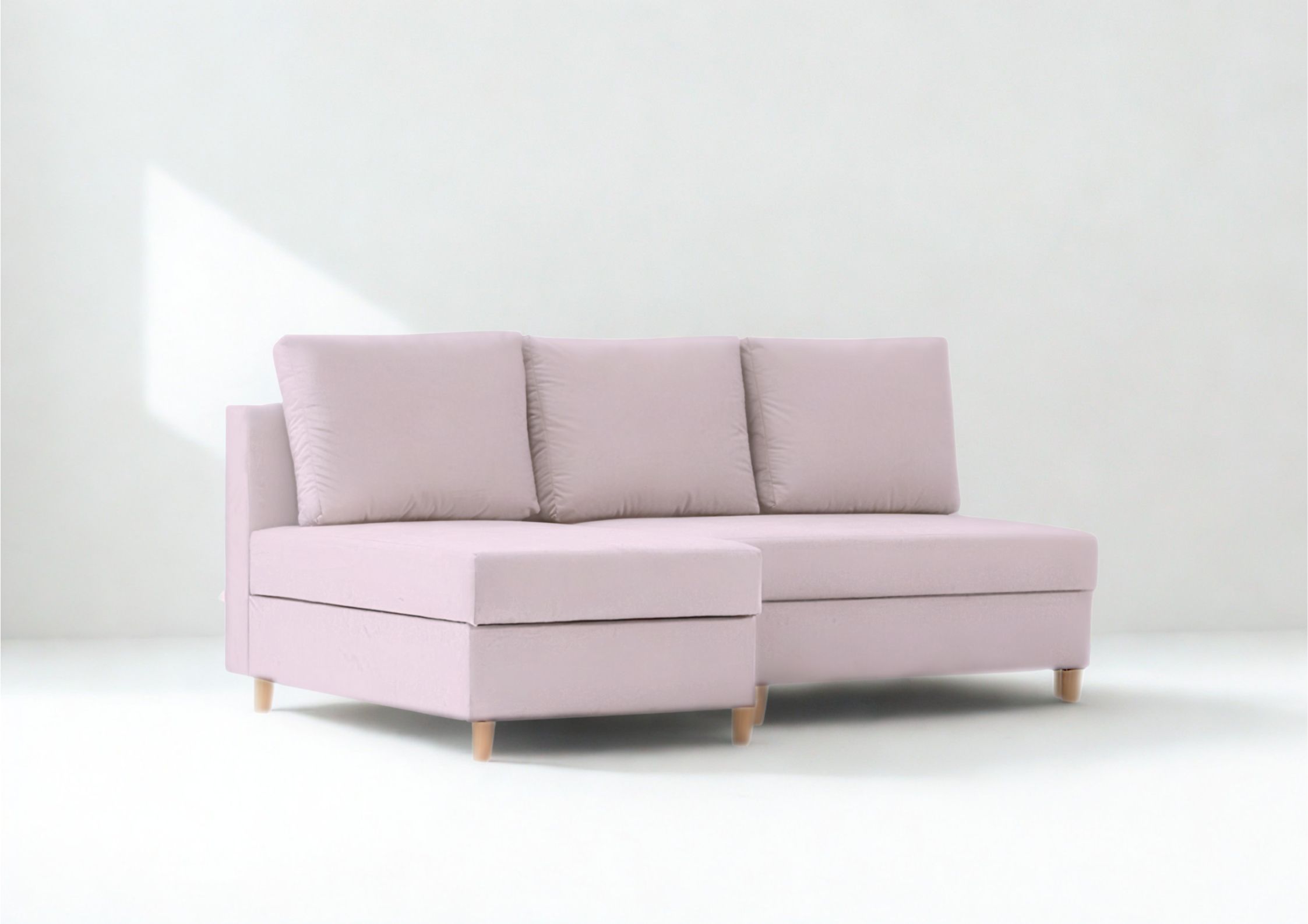 Dane techniczne: Narożnik Rozkładany Lewostronny ONYX Różowy Funkcja Spania Schowek Salon