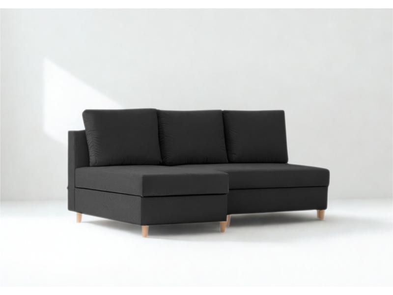Narożnik Rozkładany Lewostronny ONYX Czarny Funkcja Spania Schowek Salon