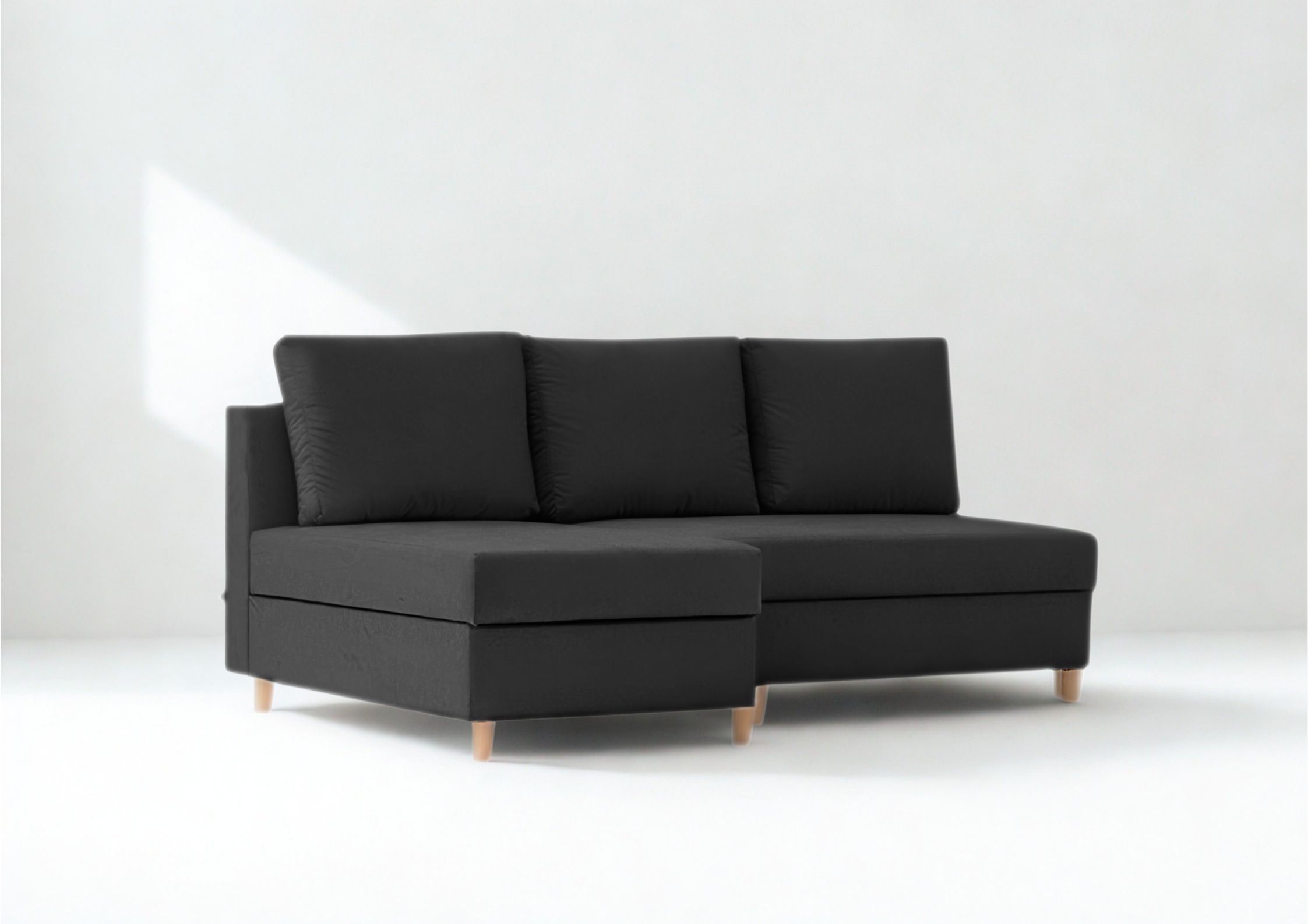 ⭐️Narożnik Rozkładany Lewostronny ONYX Czarny Funkcja Spania Schowek Salon