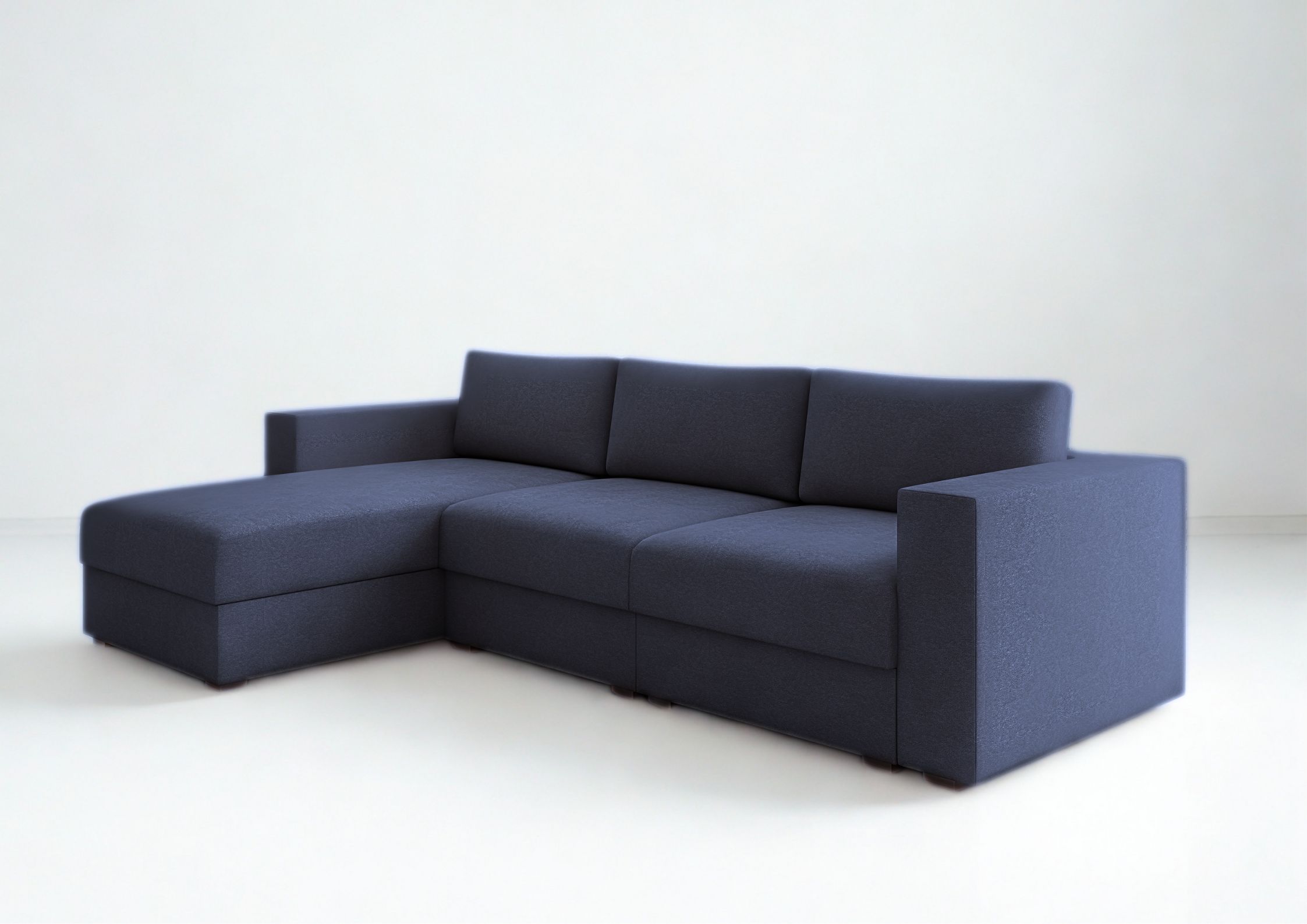 Narożnik Rozkładany Lewostronny LIFE Granatowy Funkcja Spania Schowek Salon