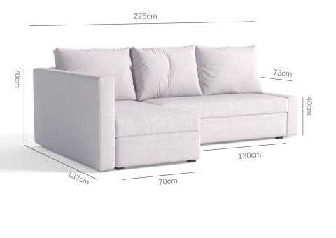 Po dniu pełnym wrażeń w pracy usiądź wygodnie na narożniku Timo. Jeśli jesteś zmęczony zmień go szybko w pełnowymiarowe łóżko za pomocą kilku ruchów. Narożnik posiada 3 duże poduszki szyte z zamkiem, dzięki czemu łatwo wymienisz wkład, czy wypierzesz je w pralce. Bok mebla jest na zaprojektowany na wysokości siedziska dzięki czemu zyskujesz następnych kilka centymetrów powierzchni siedziskowej.