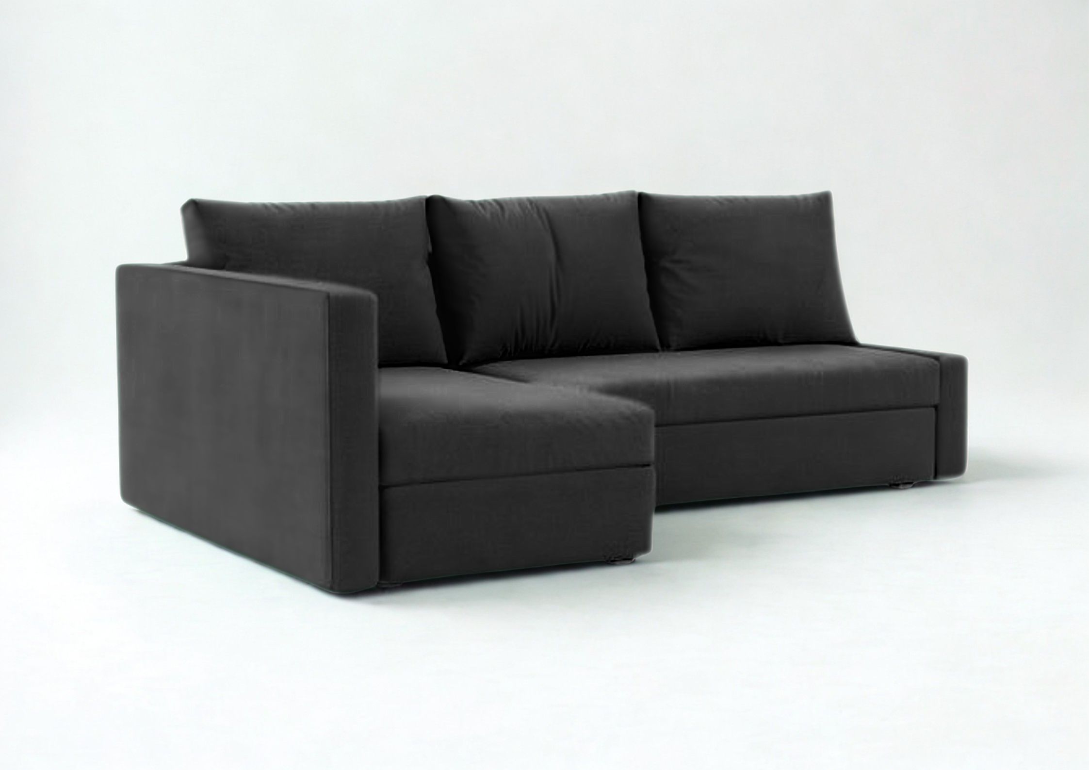 ⭐️Narożnik Rozkładany Lewostronny TIMO Czarny Funkcja Spania Schowek Salon