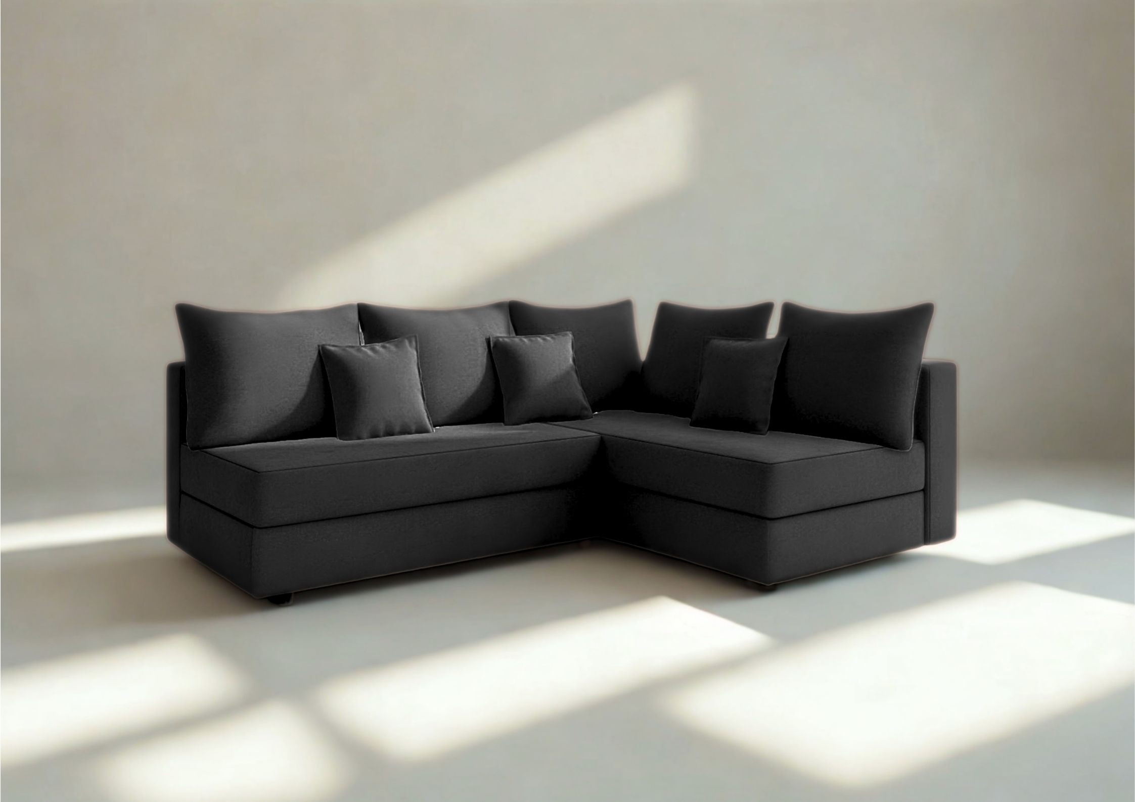 ⭐️Narożnik Rozkładany Prawy PACO L Czarny Funkcja Spania 2 Schowki Salon