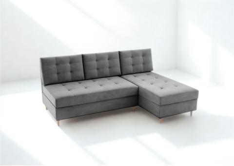 - Narożnik rozkładany z funkcją spania, który idealnie nada się zarówno do małego pokoju w bloku jak i w większych pomieszczeniach.