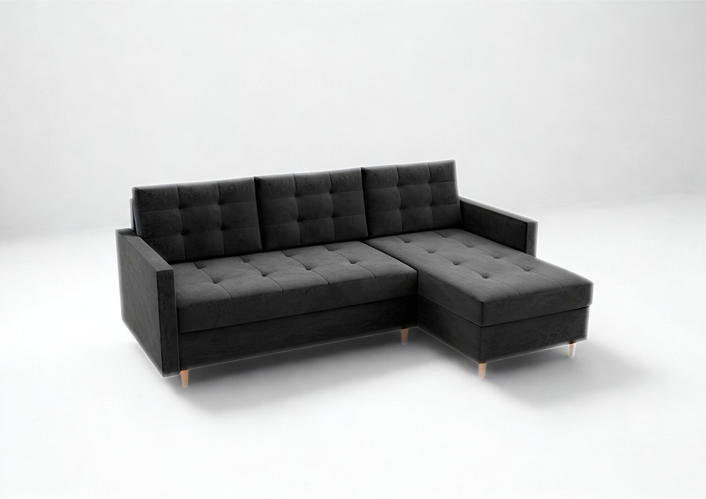 Dane techniczne: Narożnik Rozkładany Prawostronny VIDO Czarny Funkcja Spania Pikowany