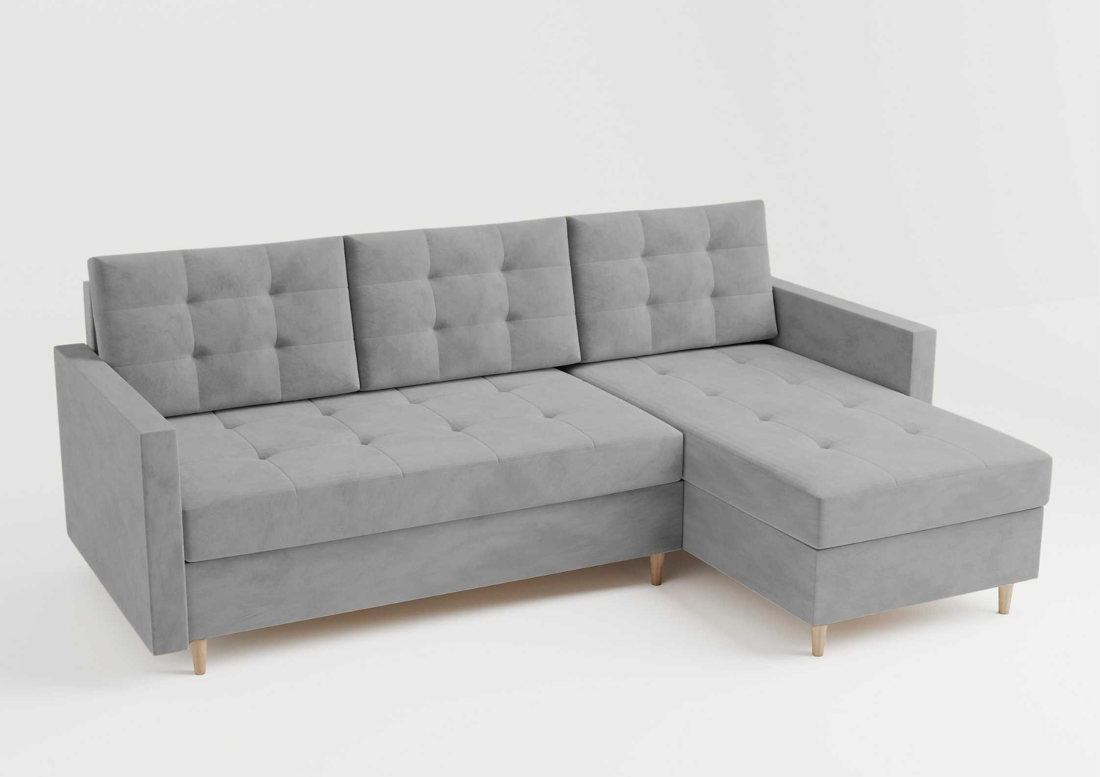 ⭐️Narożnik Rozkładany Lewostronny VIDO Szary Funkcja Spania Pikowany
