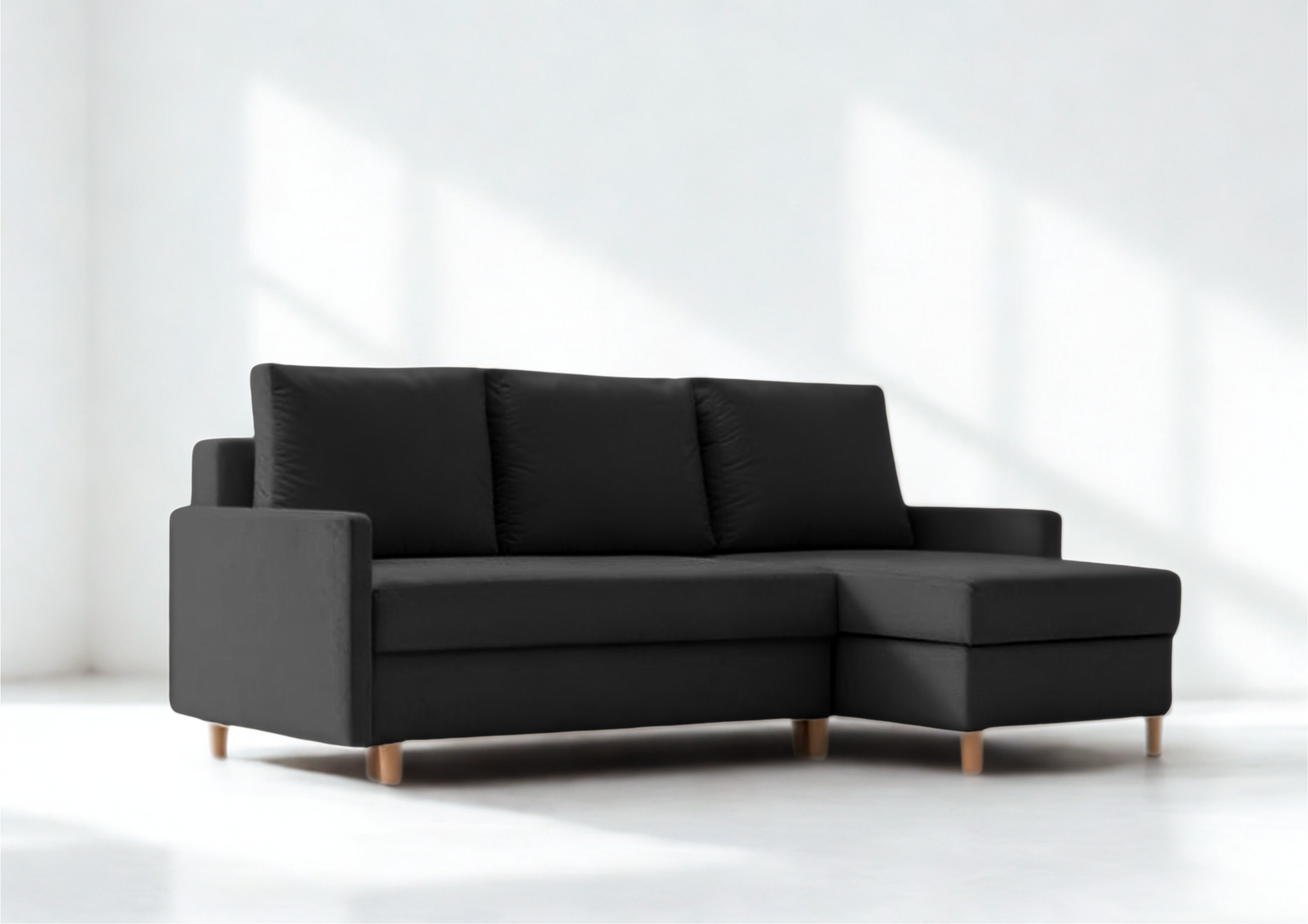 ⭐️Narożnik Rozkładany Prawostronny AROSA Czarny Funkcja Spania Schowek Salon
