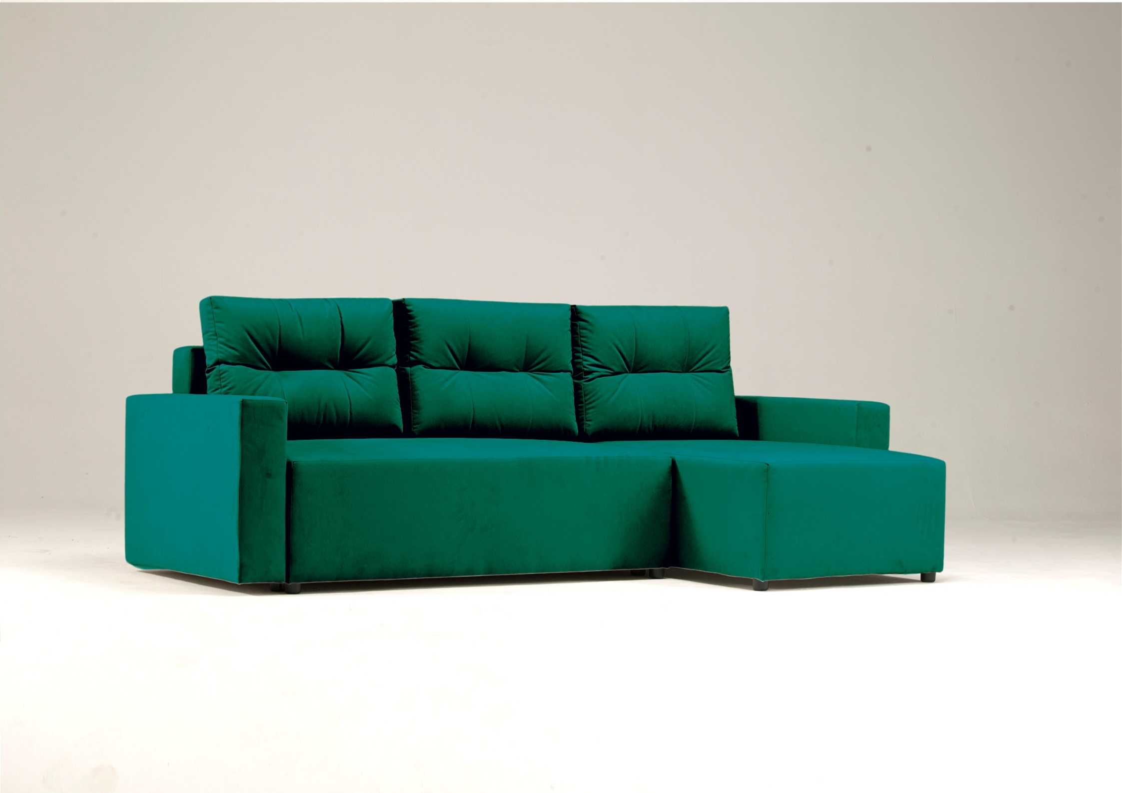 Dane techniczne: Narożnik Rozkładany Prawostronny BONO Zielony Funkcja Spania Schowek Salon