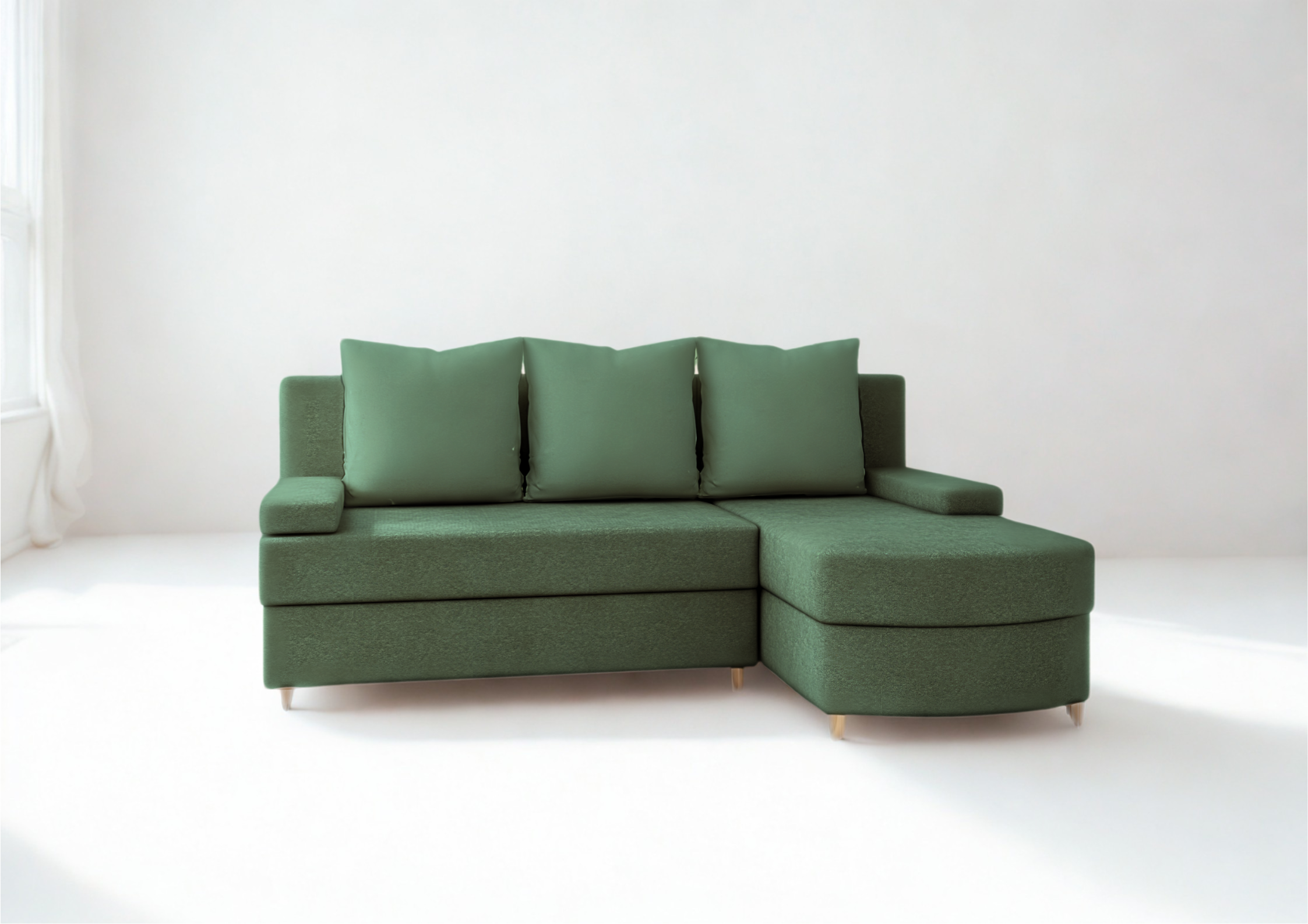 ⭐️Narożnik HELIOS Zielony Rozkładany Funkcja Spania Mały 200x150cm Otomana