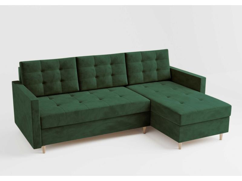 Narożnik Rozkładany Prawostronny VIDO Zielony Funkcja Spania Pikowany