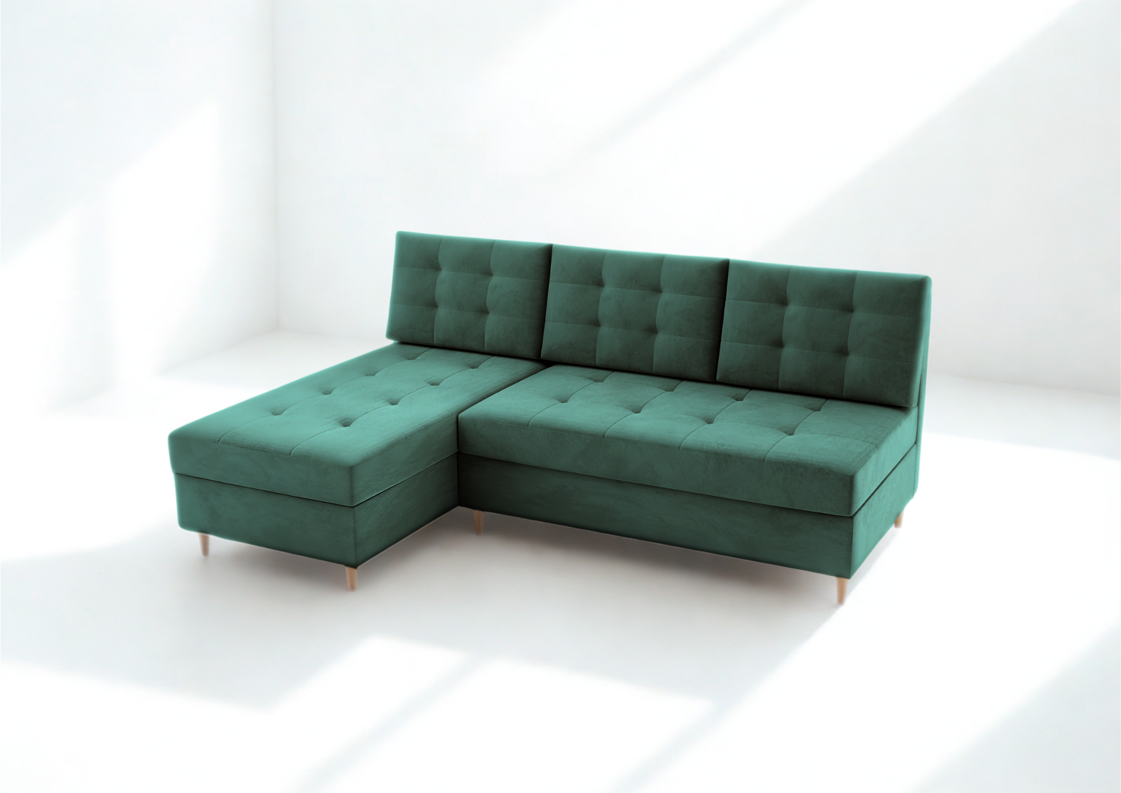 Dane techniczne: Narożnik Rozkładany Lewostronny PERO Zielony Funkcja Spania Salon