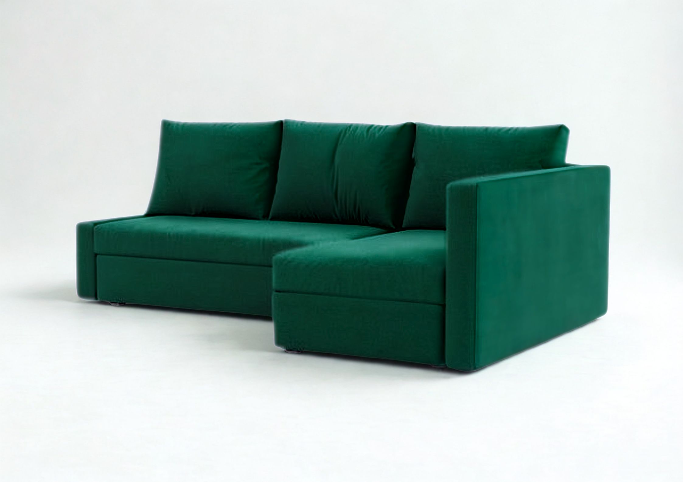 ⭐️Narożnik TIMO Zielony Rozkładany Funkcja Spania Schowek Salon 3 Poduszki
