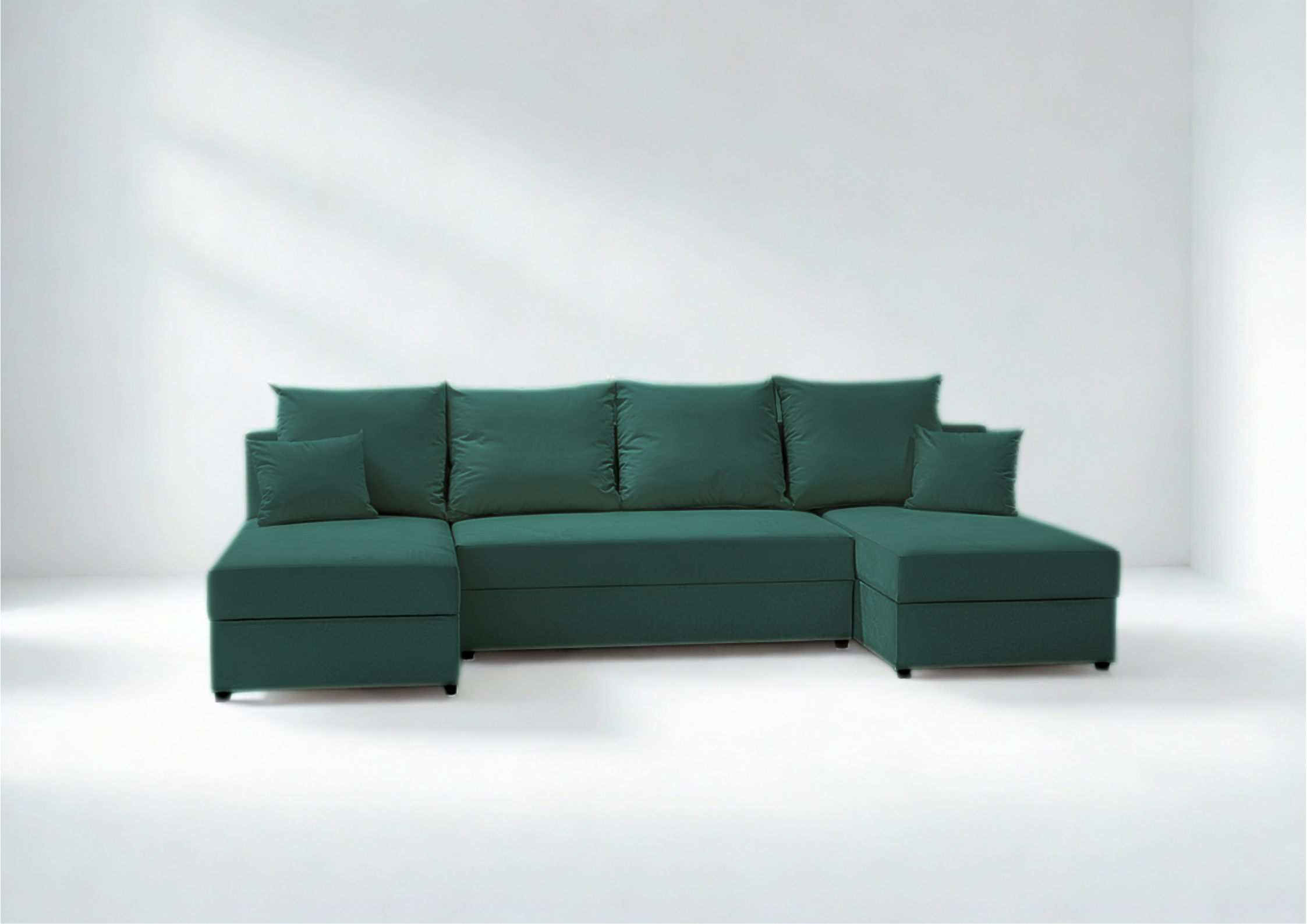 ⭐️Narożnik PACO U Zielony Rozkładany Funkcja Spania Duży Salon Welur