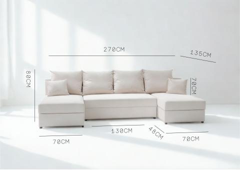 ☑️PACO U – Narożnik z Łatwym Systemem Rozkładania i Dwoma Pojemnikami na Pościel