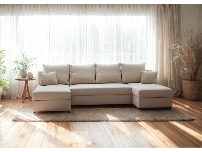 Duży narożnik do salonu PACO U w kształcie litery "U" to idealna propozycja dla tych, którzy szukają dużego mebla, zdolnego pomieścić całą rodzinę i przyjaciół podczas wspólnych spotkań. Narożnik posiada dużą funkcję spania.