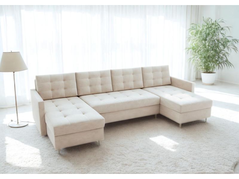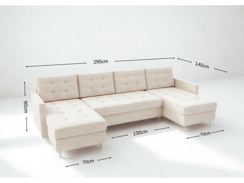 Narożnik Vido U to mebel elegancki z pikowanymi siedziskami i poduszkami. Powierzchnia siedziskowa narożnika to aż 270cm dzięki czemu w naszym pokoju dziennym będziemy mogli wygodnie usiąść całą rodzinom i odpocząć po ciężkim dniu relaksując się na swoim ulubionym miejscu. Narożnik ma 3 skrzynie na pościel i inne rzeczy, które nie mogą odnaleźć swojego miejsca w domu. Łatwo rozłożymy go do funkcji spania, dzięki systemowi kółek.