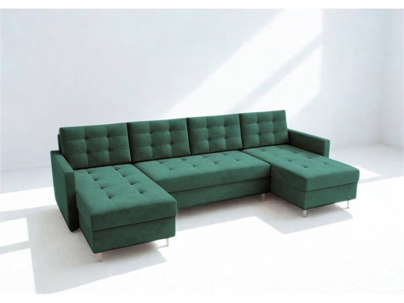 Dane techniczne: Narożnik Rozkładany VIDO U Zielony Funkcja Spania 3 Schowki Salon Welur