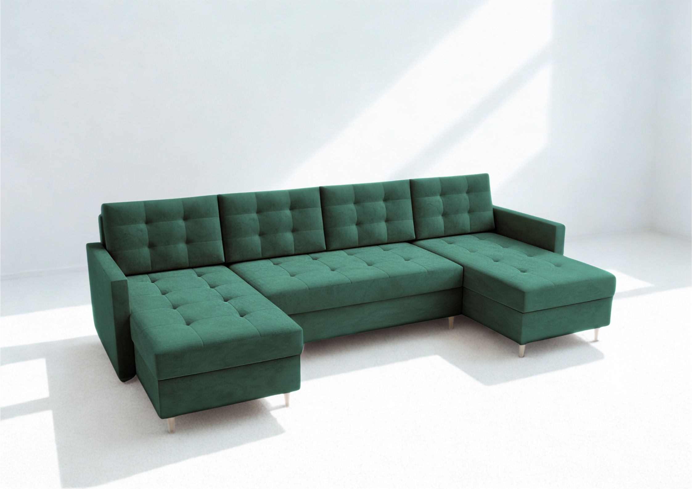 ⭐️Narożnik VIDO U Zielony Rozkładany Funkcja Spania 3 Schowki Salon Welur