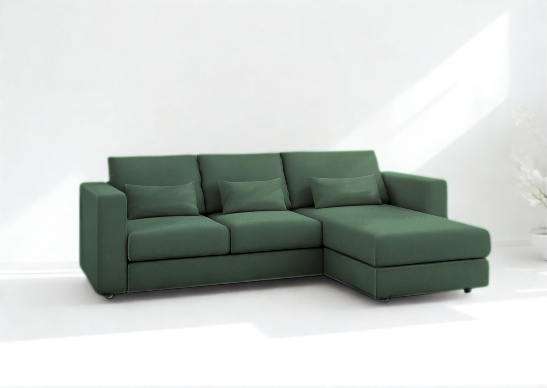 ⭐️Narożnik Rozkładany Prawostronny REALITY Zielony Funkcja Spania Wygodny