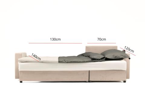 - Pod siedziskiem funkcyjnym został zamontowany 1 skrzynia na pościel, dzięki czemu zyskują Państwo dużą powierzchnię do przechowywania.