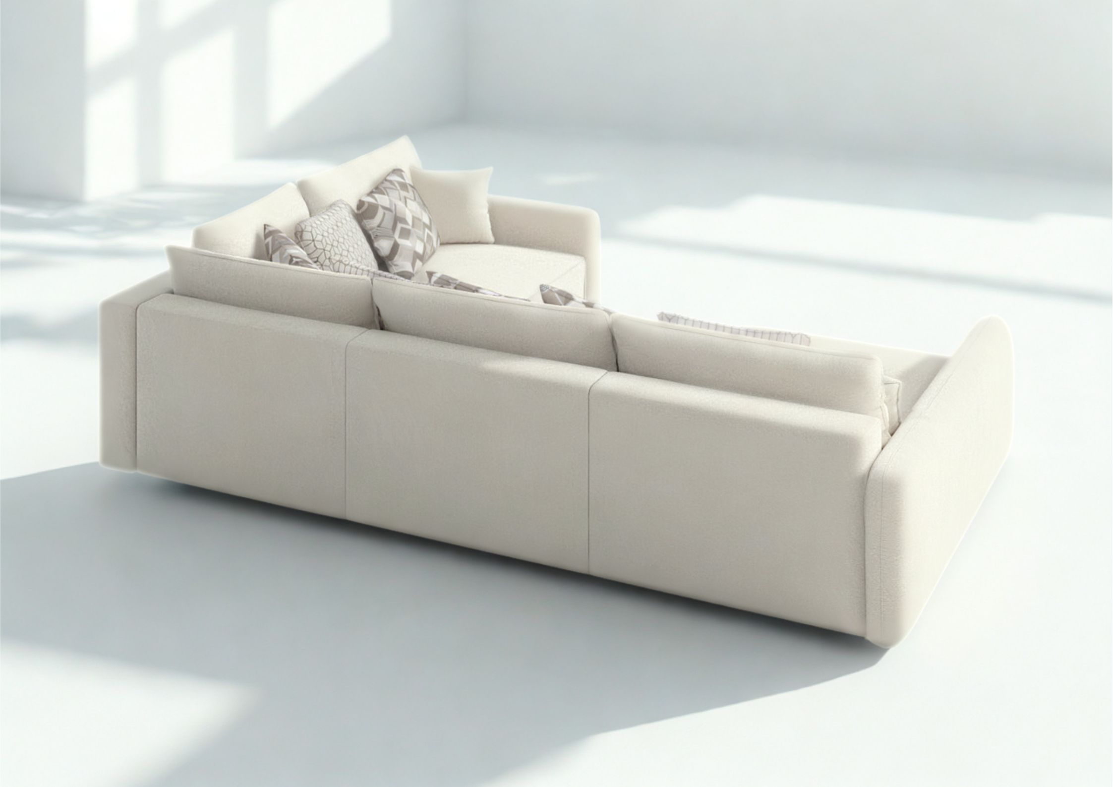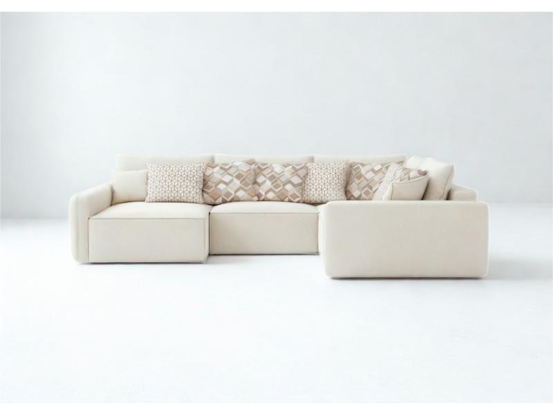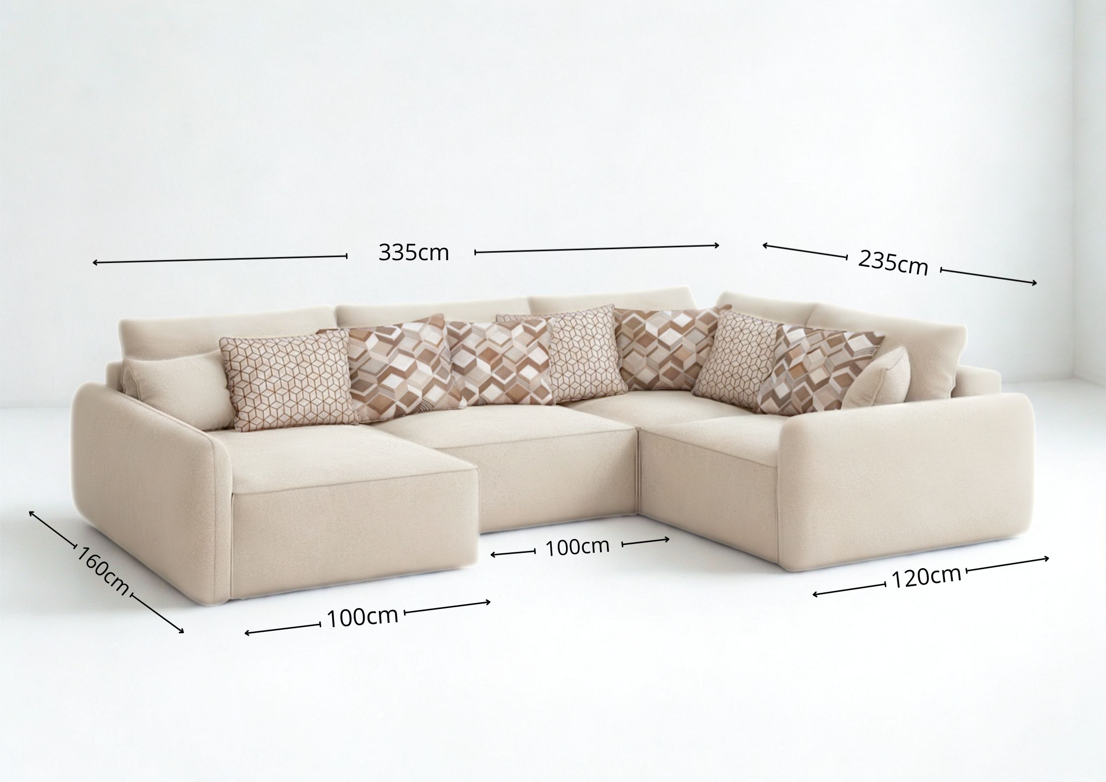 To propozycja do większych salonów. Głębokie siedziska zapewniają funkcję relaksu po całym dniu pracy. Dodatkowo zaprojektowaliśmy w nim funkcję spania, dzięki czemu Twoi goście mogą zostać na dłużej. Duże poduszki oparciowe sprawi, że oprzesz się komfortowo na meblu. Mniejsze są elementami aranżacji- do dokupienia oddzielnie. Narożnik składa się z modułów.