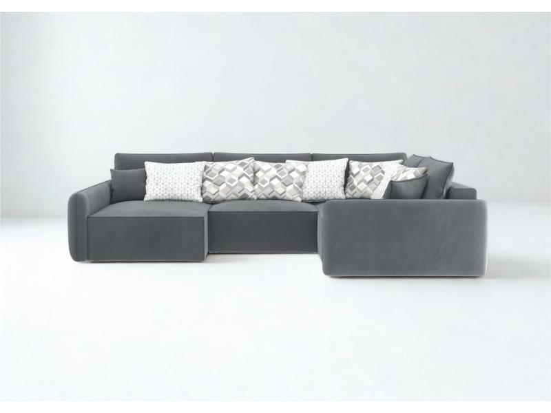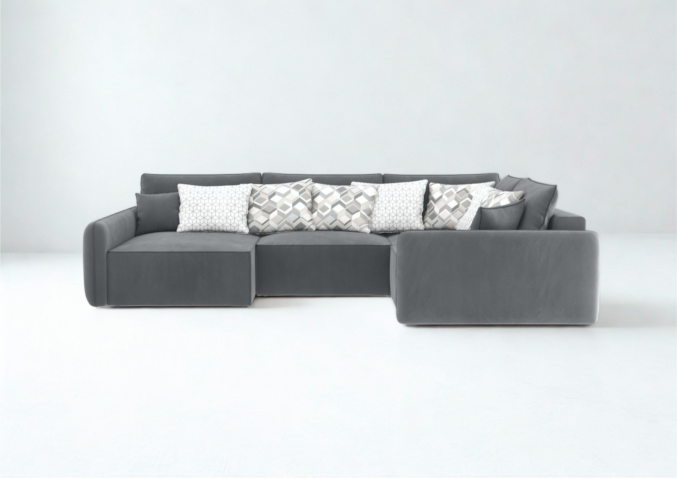To propozycja do większych salonów. Głębokie siedziska zapewniają funkcję relaksu po całym dniu pracy. Dodatkowo zaprojektowaliśmy w nim funkcję spania, dzięki czemu Twoi goście mogą zostać na dłużej. Duże poduszki oparciowe sprawi, że oprzesz się komfortowo na meblu. Mniejsze są elementami aranżacji- do dokupienia oddzielnie. Narożnik składa się z modułów.