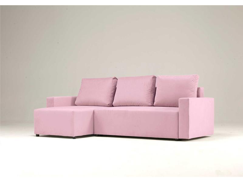 Narożnik Rozkładany Lewostronny LILA Różowy z Funkcją Spania do Salonu