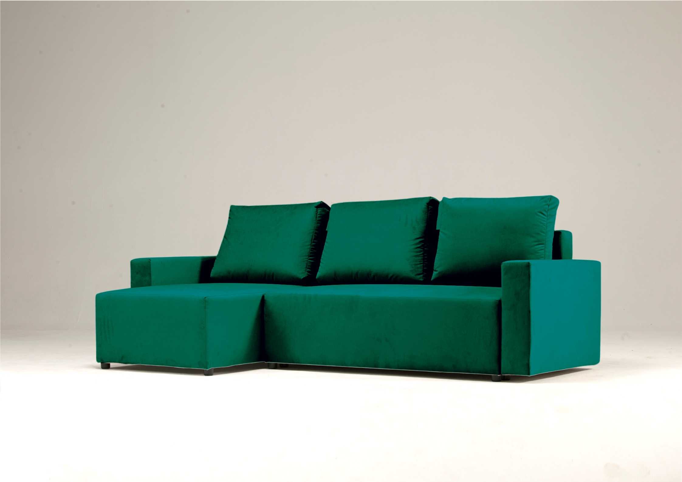Narożnik Rozkładany Lewostronny LILA Zielony z Funkcją Spania do Salonu