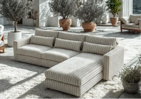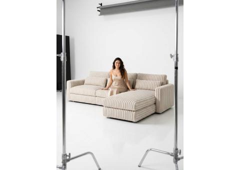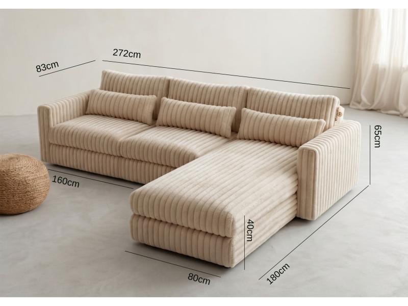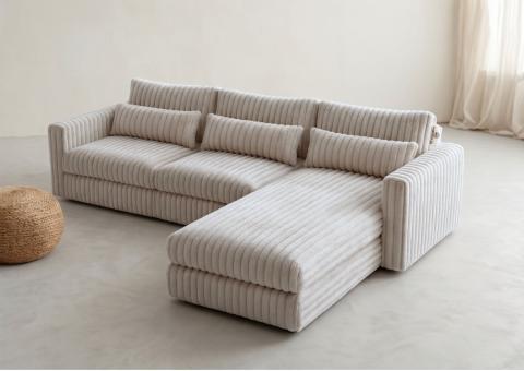 ⭐️Narożnik Rozkładany Prawostronny TILIA Beżowy odcień zimny 11 Funkcja Spania Salon