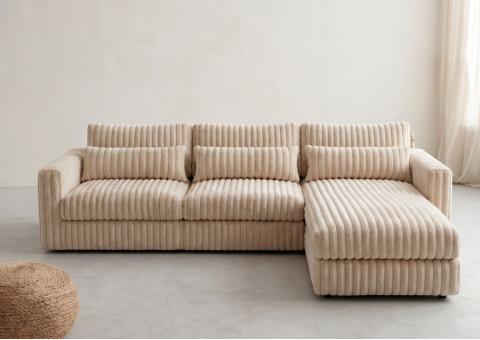 Narożnik TILIA prawy to przestronny i nowoczesny narożnik do salonu, stworzony z myślą o komforcie całej rodziny. Duża powierzchnia siedzisk oraz ergonomiczne poduszki zapewnią wygodę podczas codziennego wypoczynku i spotkań z bliskimi, a ponadczasowa forma doskonale wpisuje się w nowoczesne aranżacje wnętrz.