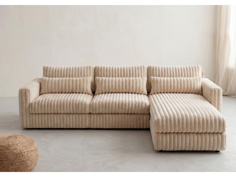 Narożnik TILIA prawy to przestronny i nowoczesny narożnik do salonu, stworzony z myślą o komforcie całej rodziny. Duża powierzchnia siedzisk oraz ergonomiczne poduszki zapewnią wygodę podczas codziennego wypoczynku i spotkań z bliskimi, a ponadczasowa forma doskonale wpisuje się w nowoczesne aranżacje wnętrz.