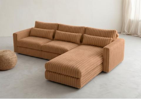 ⭐️Narożnik Rozkładany Prawostronny TILIA Miedziany 56 Funkcja Spania Salon