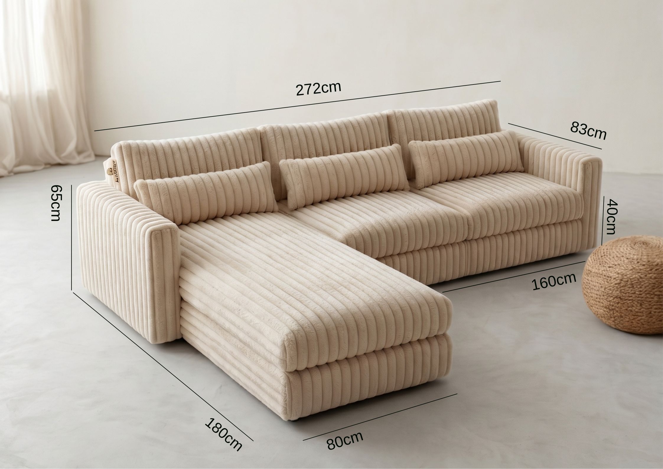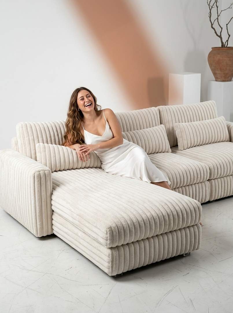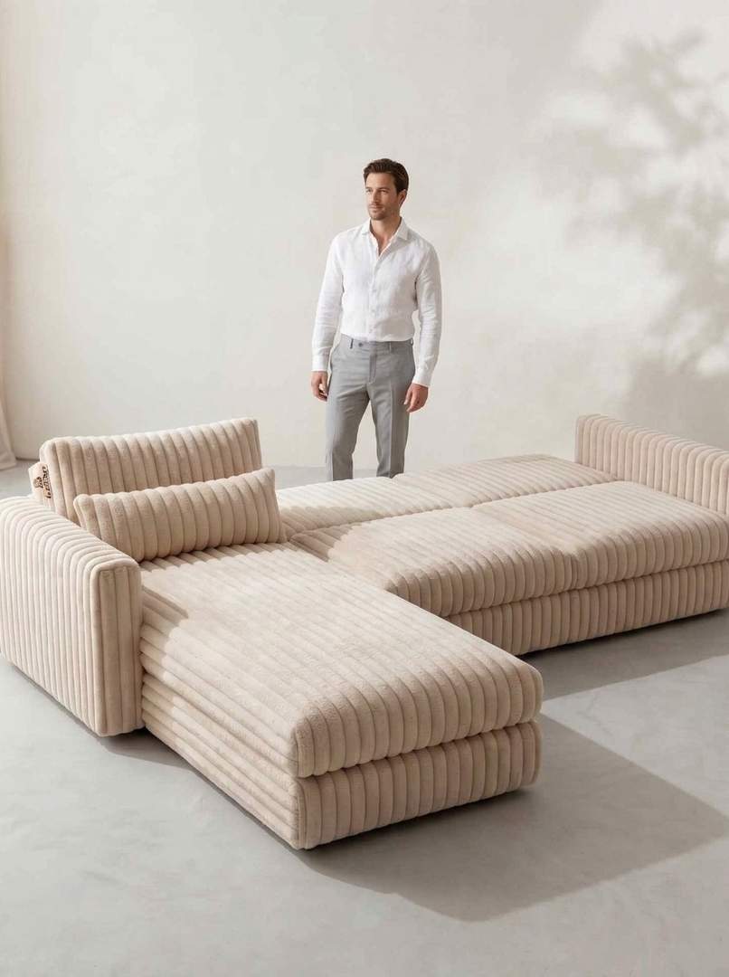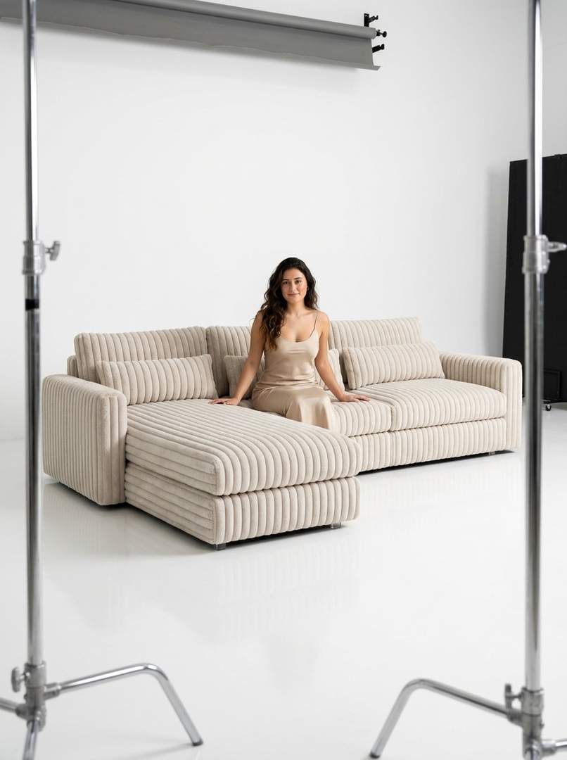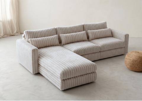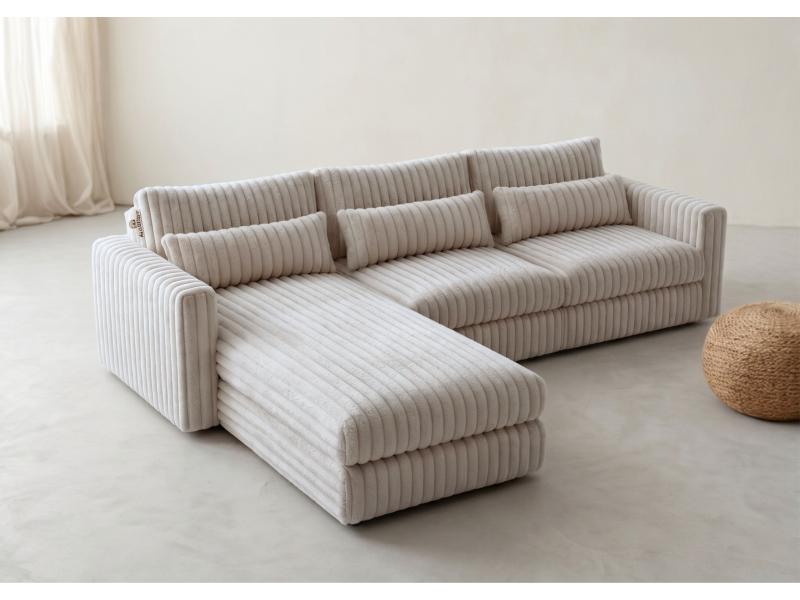 ⭐️Narożnik Rozkładany Lewostronny TILIA Beżowy odcień zimny 11 Funkcja Spania Salon
