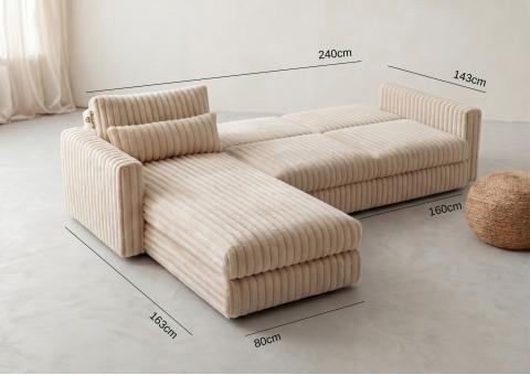 - Narożnik TILIA wyposażamy w wygodną funkcję spania o powierzchni 140x240cm.