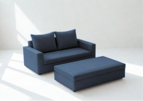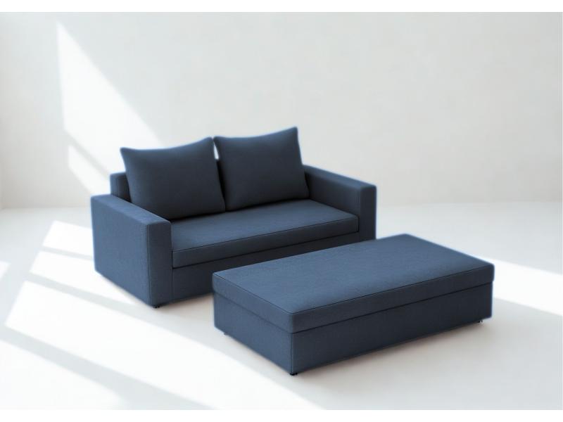 Sofa Rozkładana Dwuosobowa ARLO 2 ST z Pufą z Funkcją Spania Granatowa