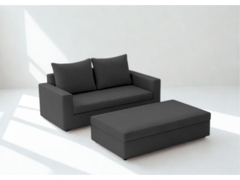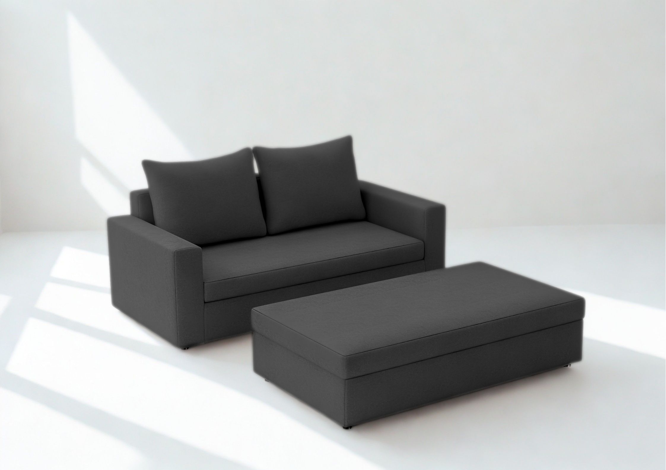 ⭐️Sofa Rozkładana ARLO 2 ST z Pufą Funkcja Spania Salon Schowek Czarna