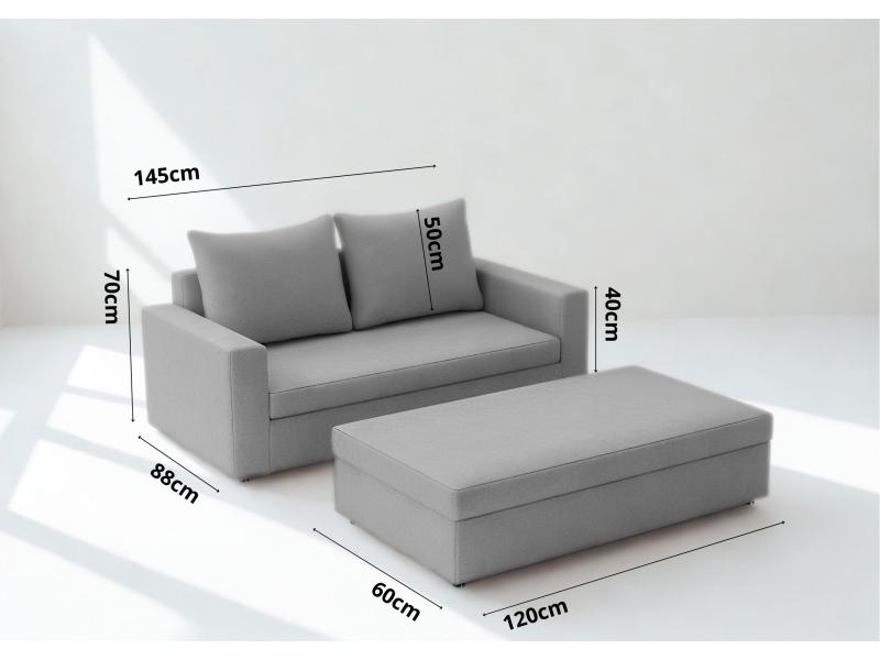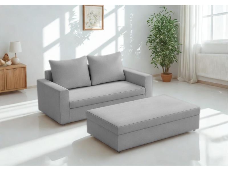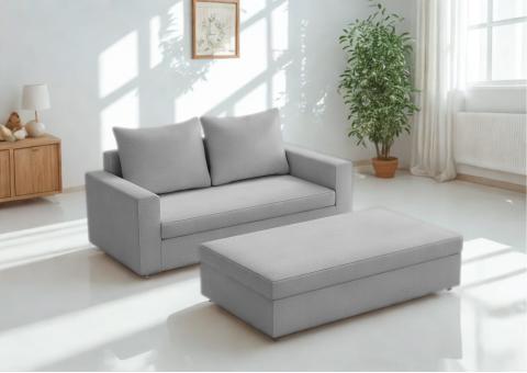 Sofa ARLO 2 ST w zestawie z pufą jest meblem niezwykle funkcjonalnym i wygodnym. Możliwość połączenia mebli zapewnia dużą powierzchnię spania. Sofa posiada wbudowane pojemniki na pościel. Łatwa w montażu.