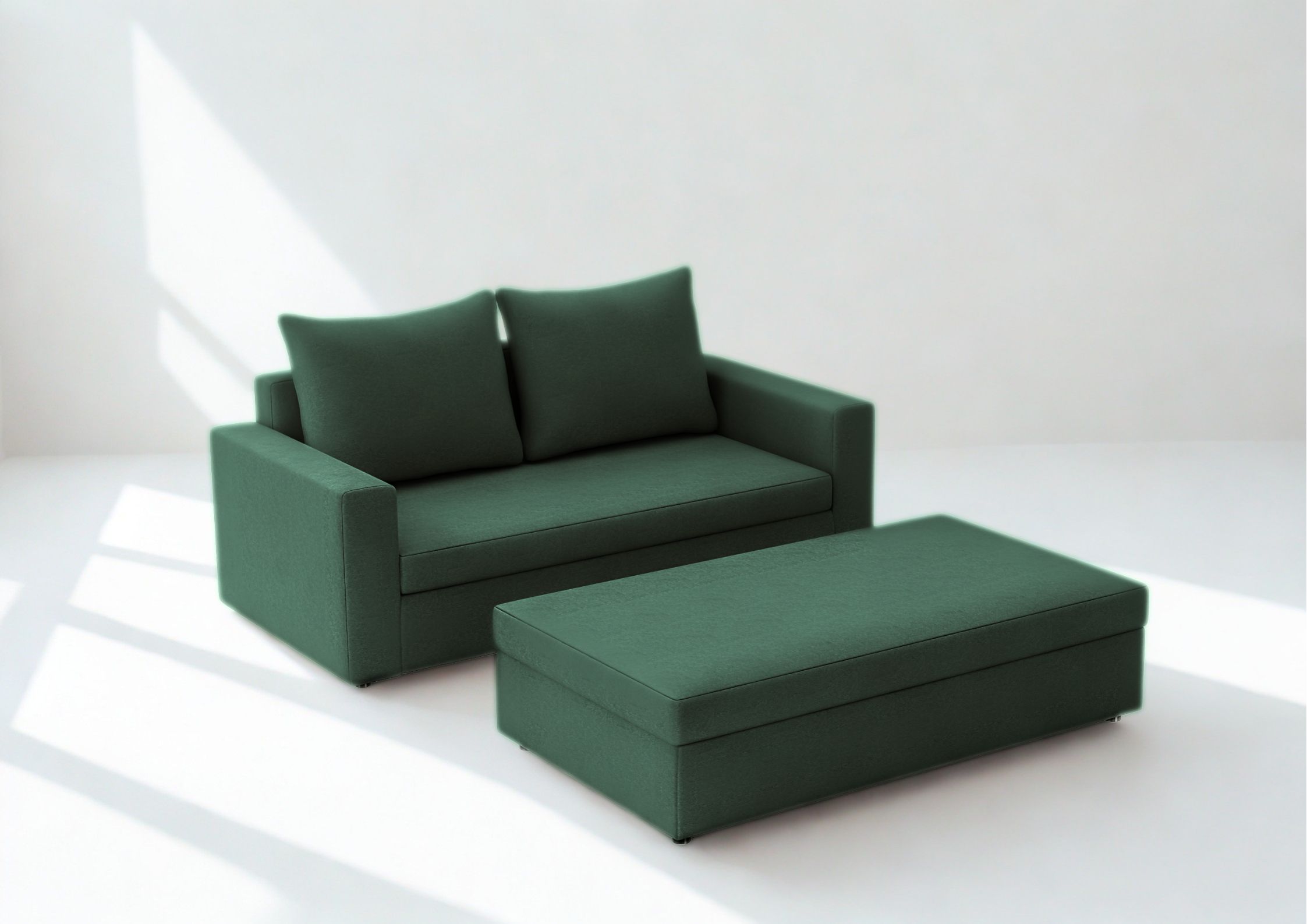 ⭐️Sofa Rozkładana ARLO 2 ST z Pufą Funkcja Spania Salon Schowek Zielona