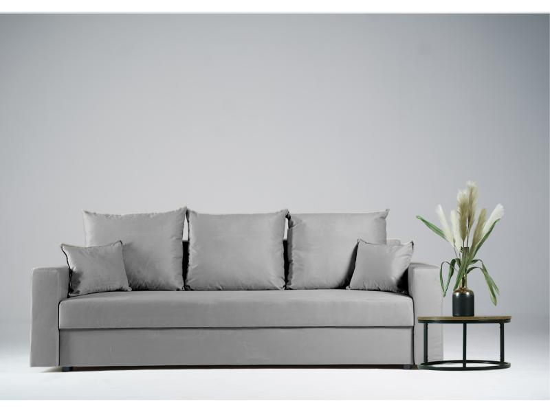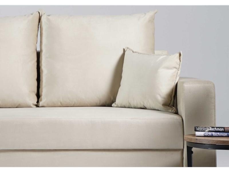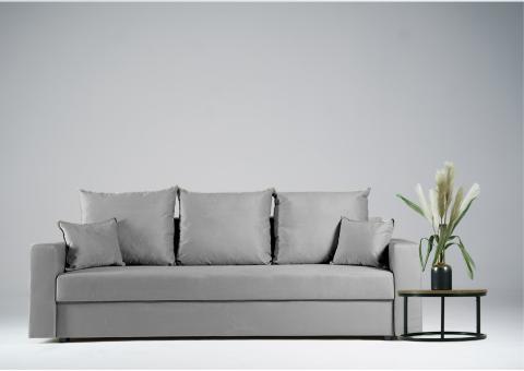 - Sofa z funkcją spania, który idealnie nada się zarówno do małego pokoju w bloku jak i w większych pomieszczeniach.