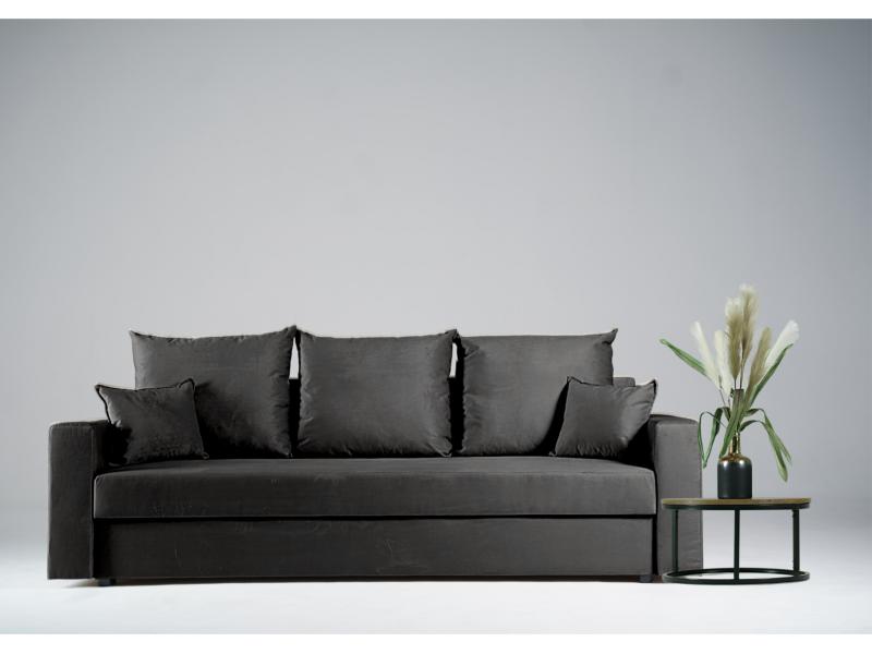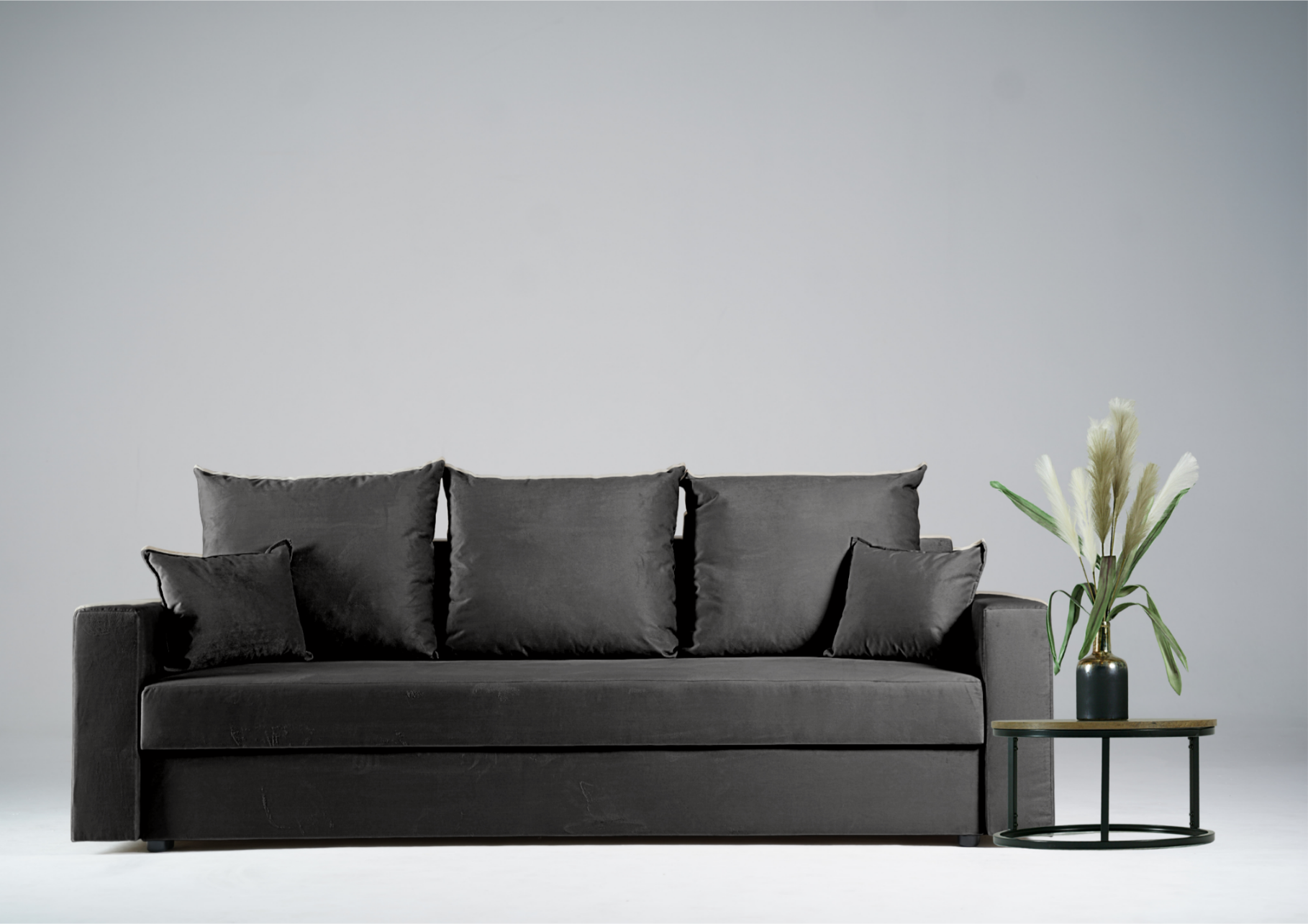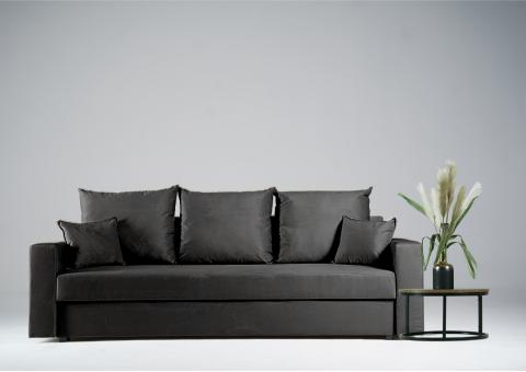 Sofa Rozkładana Trzyosobowa ARLO Grafitowa z Funkcją Spania do Salonu Mała