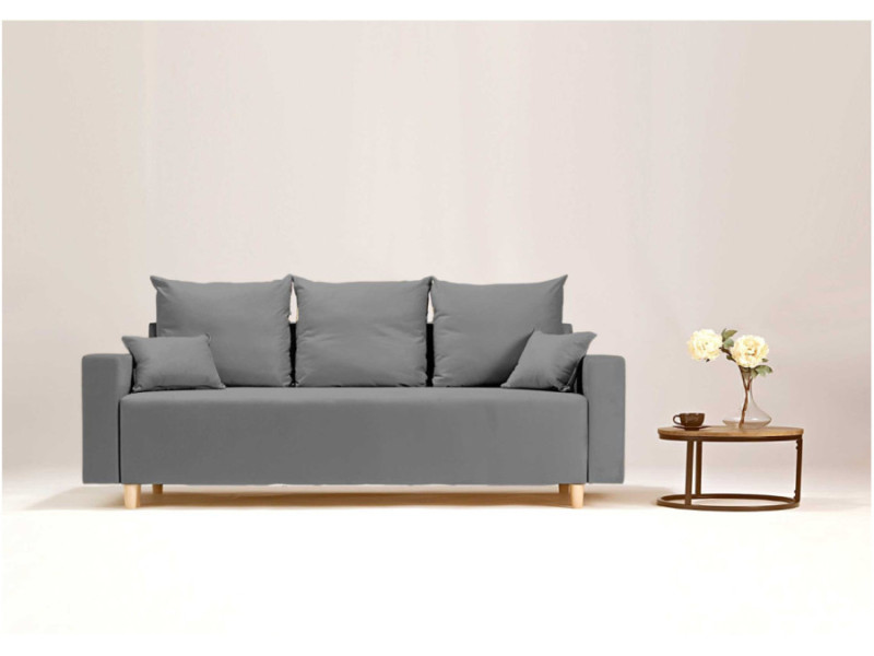 - Sofa z funkcją spania, który idealnie nada się zarówno do małego pokoju w bloku jak i w większych pomieszczeniach.