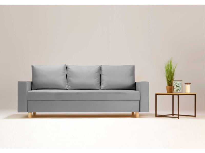 Sofa Rozkładana Trzyosobowa BEVER Szara z Funkcją Spania Skandynawska