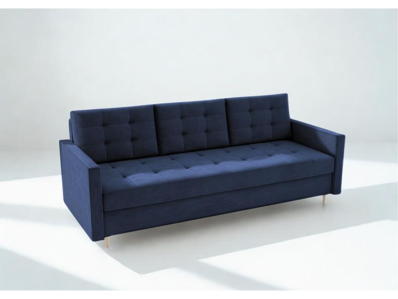 Sofa Rozkładana VIDO Granatowa Pikowana z Funkcją Spania Kanapa do Salonu