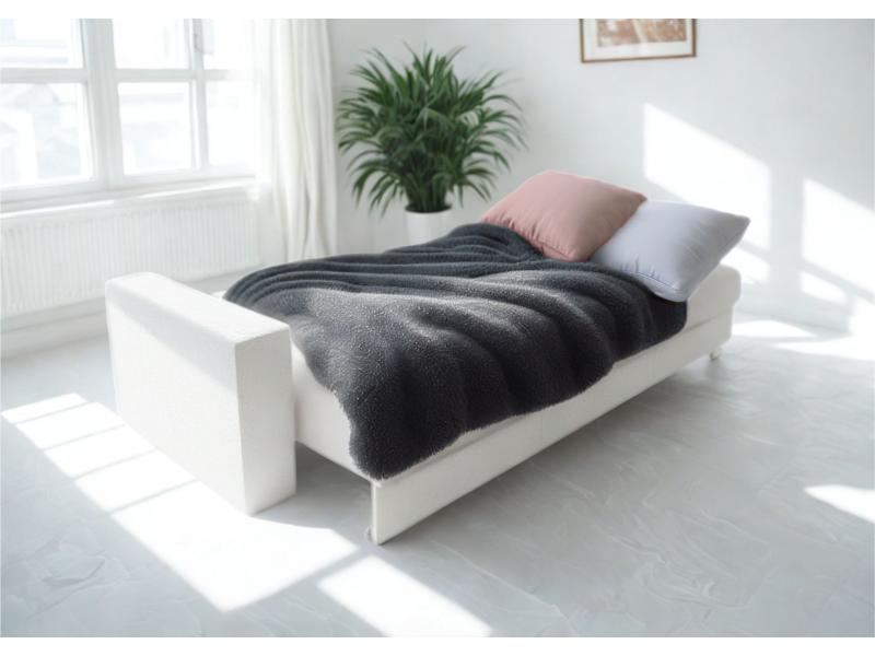 - Sofa z funkcją spania, który idealnie nada się zarówno do małego pokoju w bloku jak i w większych pomieszczeniach.